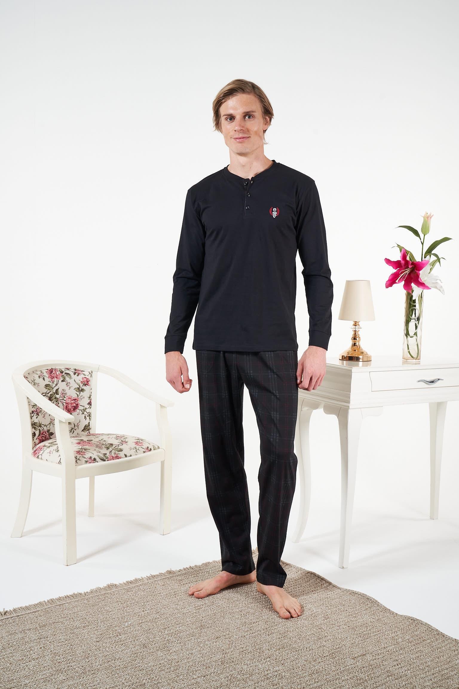 Kumaş Özelliği: Yumuşak dokulu penye kumaş. Nefes alabilen yapısı sayesinde terletmez, cilde dost dokusuyla gün boyu konfor sağlar. Esnek ve hafif formu ile dört mevsim kullanıma uygundur. Ürün Açıklaması: Klasik ve modern detayları bir arada sunan Erkek Siyah Altı Ekose Penye Pijama Takımı, rahat kalıbı ve yumuşacık kumaşıyla konforu ön plana çıkarır. Sade üst tasarımı alt kısmındaki ekose desenli pantolonla tamamlanarak şık bir kontrast oluşturur. Evde dinlenme veya uyku saatlerinde maksimum rahatlık sağlayan bu takım, hafif ve esnek penye kumaşıyla gün boyu konfor sunar. Detaylar: Uzun kollu, düğmeli yaka üst Esnek bel lastikli alt Penye kumaş Hafif, nefes alabilen yapı Makinede 30°C’de yıkanabilir