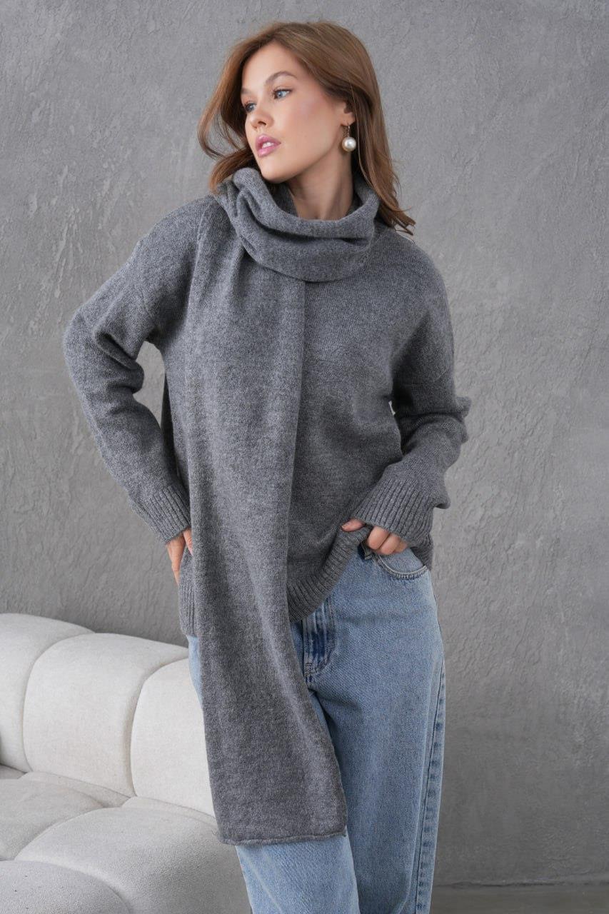 Şıklık ve konforu bir arada sunan bu atkı detaylı triko kazak, soğuk havalarda tarzınızı tamamlıyor. Boğazlı yaka formu ve entegre atkı detayıyla modern bir görünüm kazandırırken ekstra sıcaklık sağlar. Yumuşak dokusu ve rahat kalıbıyla gün boyu konforlu kullanım sunar. Jean, etek veya klasik pantolonlarla kolayca kombinlenebilir. Sonbahar ve kış sezonunun trend parçası olarak gardırobunuzun favorisi olmaya adaydır.